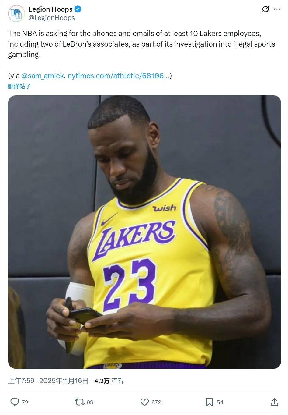北京时间11月16日上午7点,据The Athletic记者Joe Vardon以及Sam Amick等联合报道,NBA已经对包括洛杉矶湖人在内的开云体育多支球队展开调查,要求他们交出文件和手机等资料。